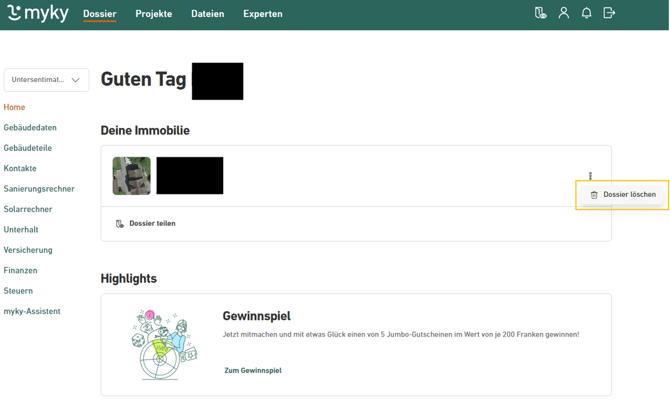 Wie kann ich ein einzelnes Dossier in meinem myky Konto löschen?