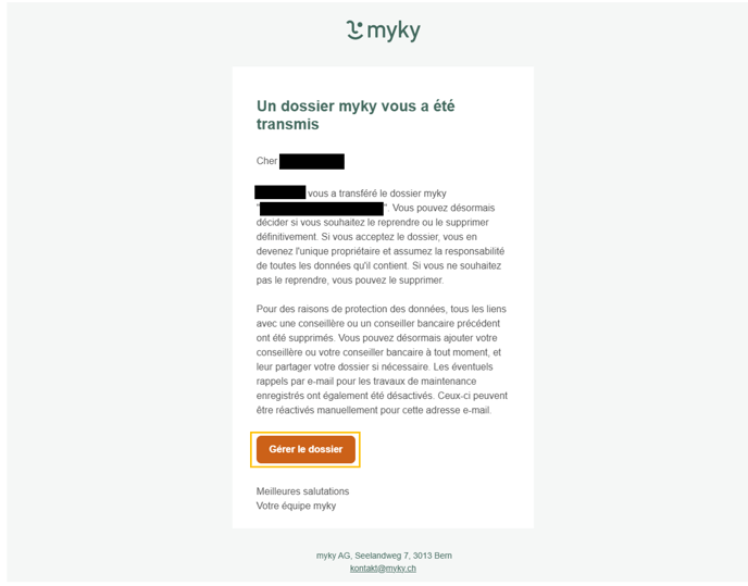 6. Vous devriez maintenant recevoir un e-mail à l'adresse que vous avez indiquée à l'étape 4. Après avoir lu le message, cliquez sur "Gérer le dossier".