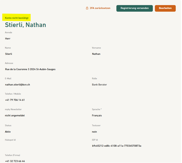1. Prüfen in der Applikation, ob bei dem Account steht, dass der Account nicht bestätigt ist.